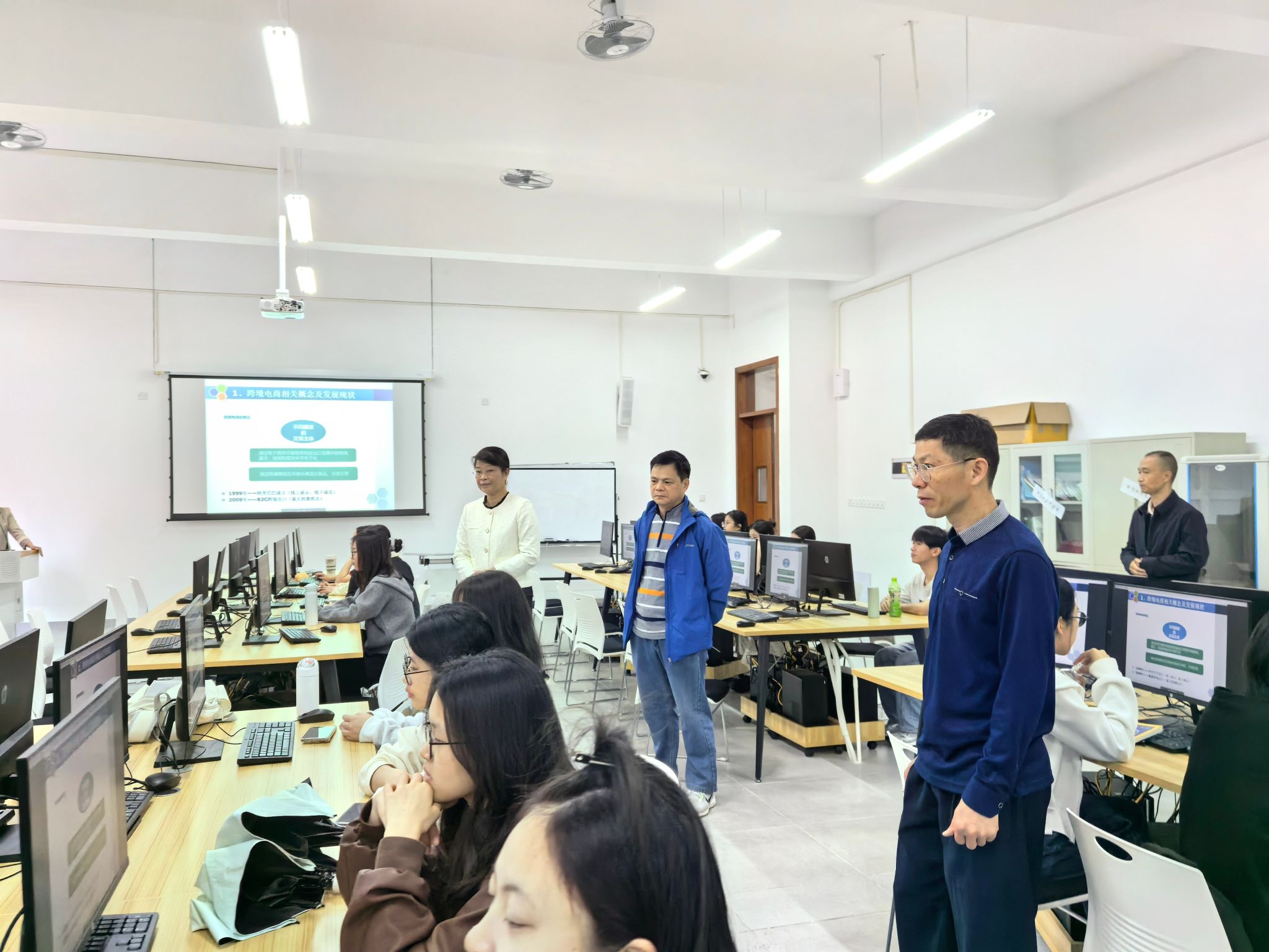 3月16日开学首日,经济管理学院党总支书记刘志海和院长赖文燕带领院领导班子,以及办公室、辅导员、实训管理员等相关成员,深入课堂开展新学期教学检查工作。