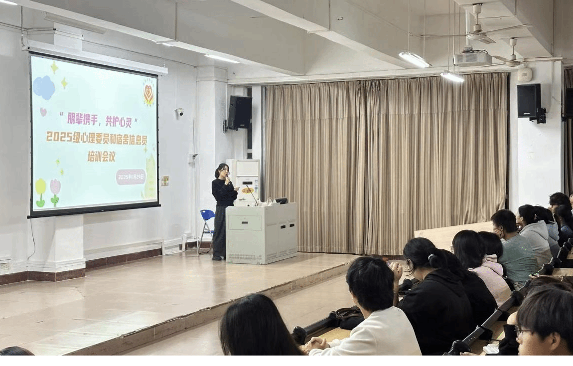 为助力2025级心理委员与宿舍心理信息员更好掌握心理知识,提升对同学们心理问题的识别、预警与初步干预能力,经济管理学院二级心理辅导站于2025年11月24日晚8:40,在教学楼Z101召开2025级心理委员及宿舍心理信息员专项培训会议,本次培训由心阳驿站指导老师林姿默主讲。