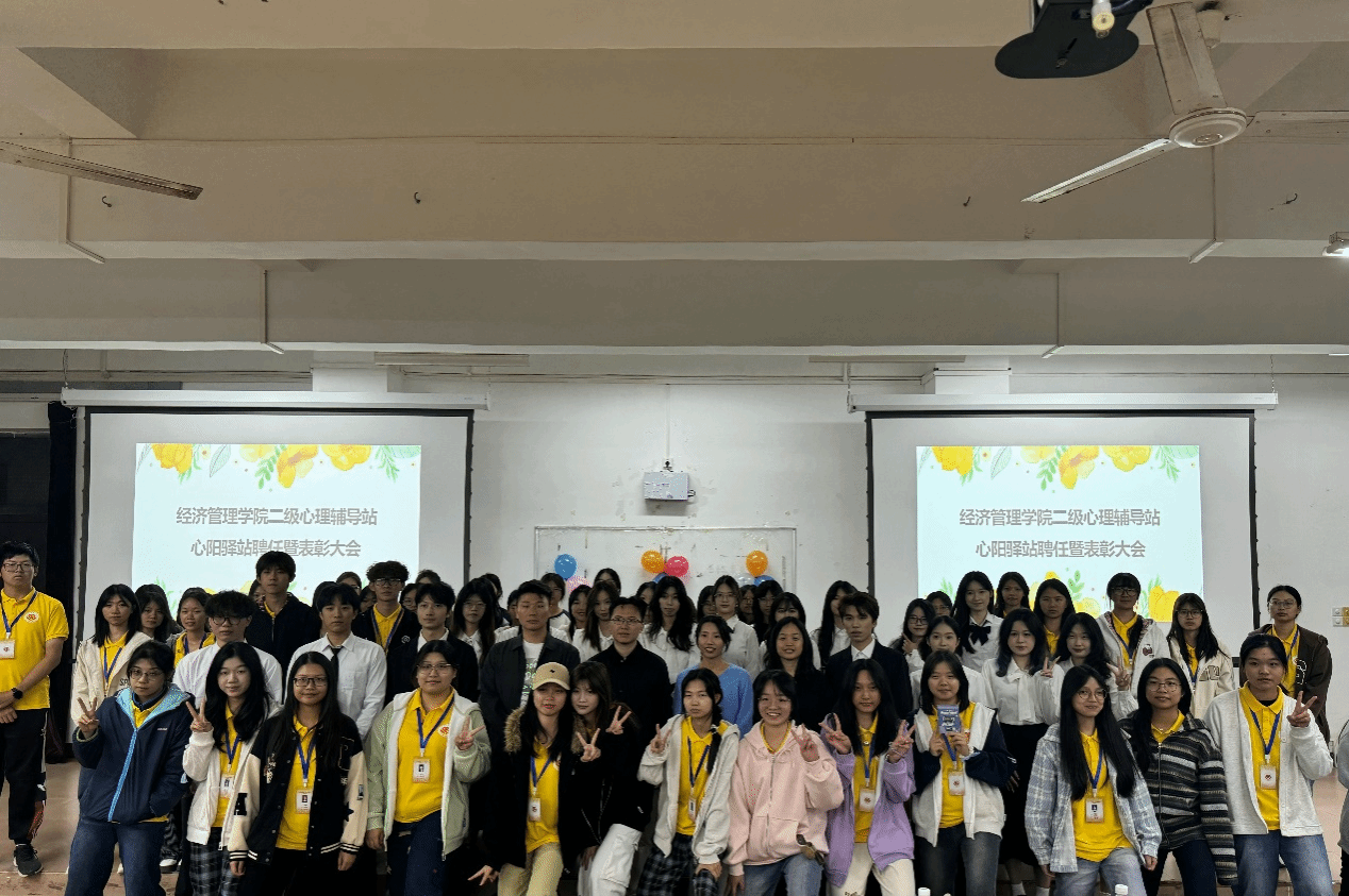 2025年11月26日晚上19:00,经济管理学院心理辅导站心阳驿站聘任暨表彰大会在教学楼Z101课室正式召开。经济管理学院陈婕老师、汪双飞老师、林姿默老师、黄弘扬老师出席本次会议,学院心理委员及心阳驿站全体成员共同参会,齐聚一堂见证二级站发展新起点。